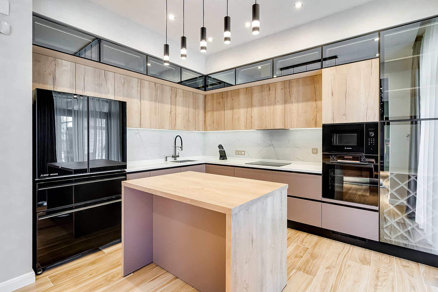 Большое внимание мы уделяем качеству наших изделий, используем лучшие материалы и уникальную систему сборки мебели. Чтобы обеспечить надежность конструкции, каркасы кухонных шкафов склеиваются на производстве с помощью специальных станков и доставляются вам в собранном виде. Клееные корпуса кухонь — это новинка на российском рынке, мы уже привыкли, что мебель поставляют в разобранном виде, что не всегда удобно. Заказав кухню у нас, вы будете приятно удивлены. Готовые клееные модули гораздо крепче, их проще и быстрее собирать. Готовые модули кухни герметично упаковываются с помощью термоусадочных станков. Это защищает мебель при транспортировке от механических повреждений, воздействия влаги и перепада температур.